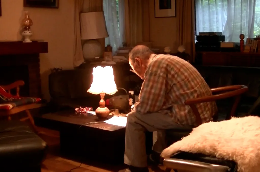 仕事ができなくなり、ベッドに横たわる父は、娘さんが撮影した映像を観る。その目は鋭い。